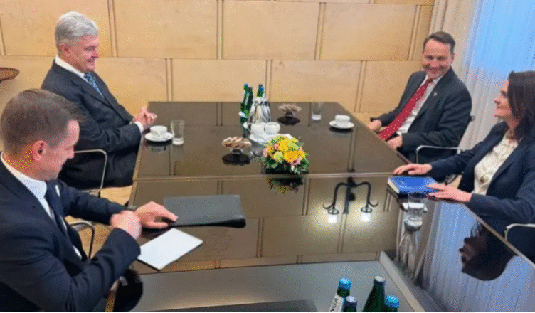 Лідер партії “Європейська солідарність” Петро Порошенко зустрівся з міністром закордонних справ Польщі Радославом Сікорським.