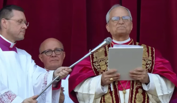 Перед тим, як Прево з’явився на публіці, на центральний балкон базиліки Святого Петра вийшов кардинал-протодиякон Домінік Мамберті, який виголосив “Habemus papam” – латинський вислів, що означає “У нас є Папа”.