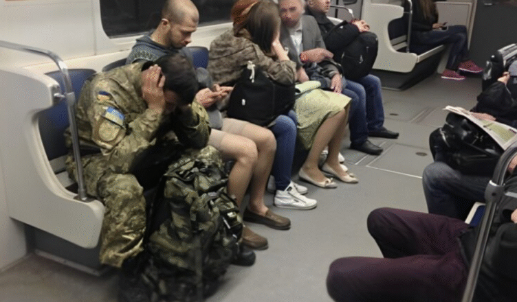 Коли через кілька станцій людей стало менше, я побачила чоловіка у військовій формі з дуже стомленим обличчям.