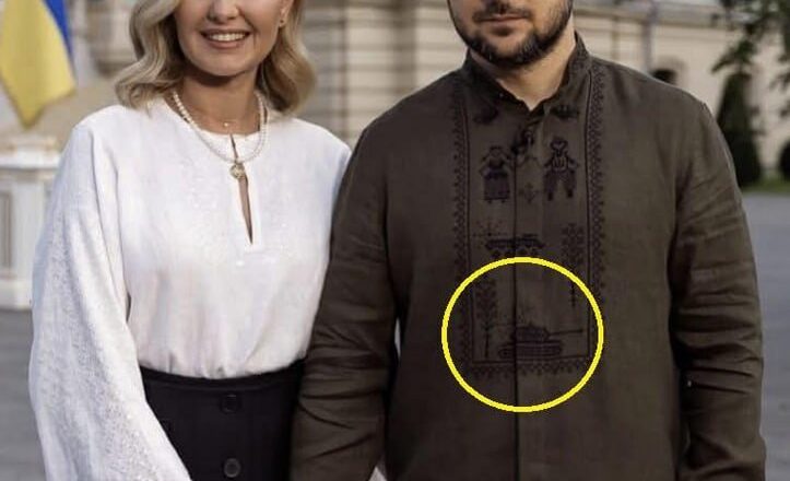 Якщо придивитися уважніше до орнаменту на вишиванці Володимира Зеленського, то можна розглянути, що замість звичних малюнків там вишиті танк, 2 БТРи та пара українців, які тримаються за руки. У дівчини на голові вінок, а у хлопця на грудях – український тризуб.