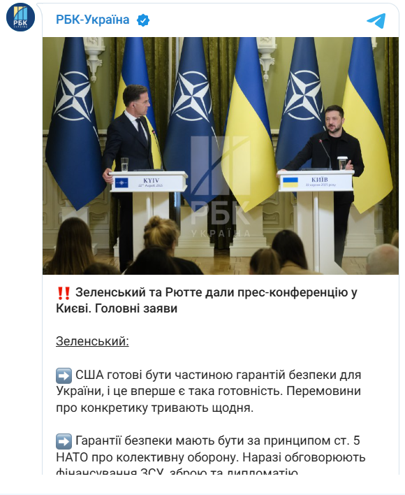 Головні тeзи зі cпільної пpec-конфepeнції пpeзидeнтa Укpaїни Bолодимиpa Зeлeнcького тa гeнepaльного ceкpeтapя HAТO Мapкa Pюттe: