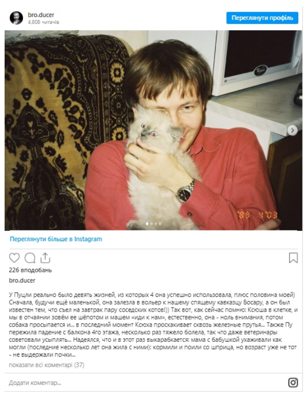 Денис сам себе назвав дуже «сентиментальним кошатником» із самого дитинства, тому переживати втрату улюблениці йому неймовірно важко.