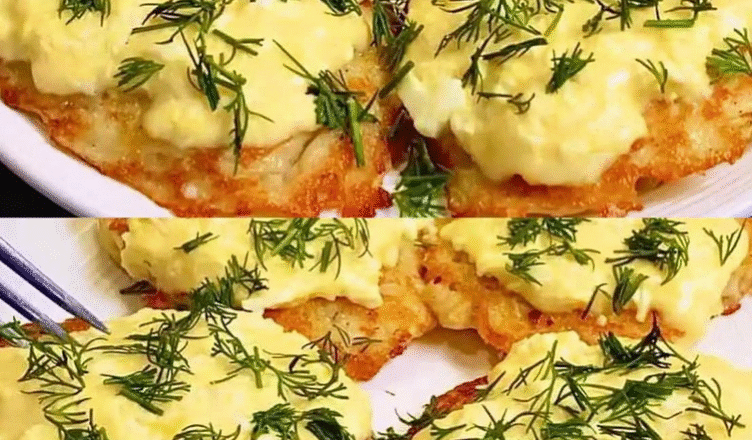 У миску яйця і твердий сир натираю на терці. Додаю майонез, видавлюю часник, перемішую. Тепер сирну начинку викладаю поверх картопляних коржиків, накриваю кришкою на 5 хвилин і готово.