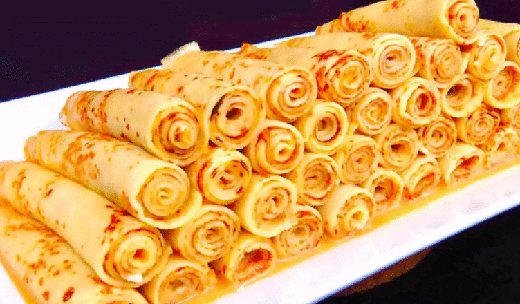 Охолоджені млинці розрізаю навпіл, змащую згущеним молоком і закручую трубочки.