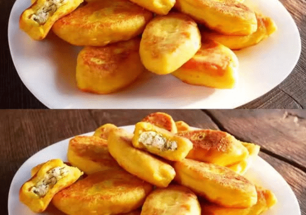 З тіста формую коржики руками та викладаю всередину начинку, защипаю.
