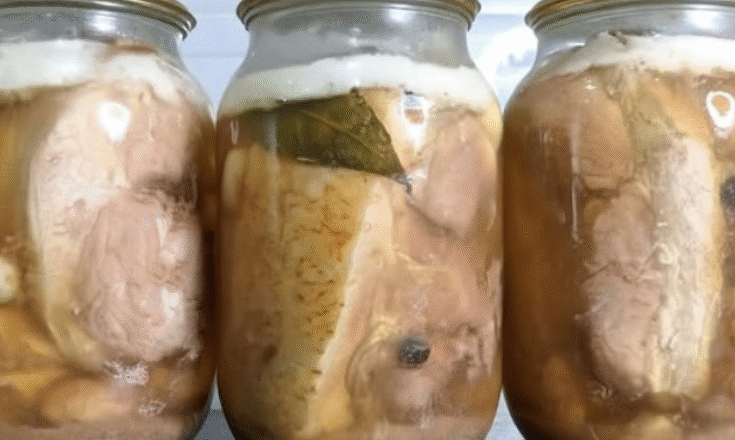 - Заливаємо сало гарячим маринадом і накриваємо прокип’яченими кришками.