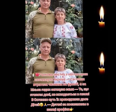 На Полтавщині в селі Кустолово-Суходілка в один день поховали подружжя – 52-річного Віктора та 48-річну Світлану Григоренків.