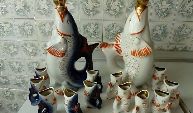 Все залежить від рідкісних забарвлень «рибок» та місця виготовлення. Особливо цінуються набори з клеймом радянських керамічних заводів, як-от ЛФЗ або «Гжель».